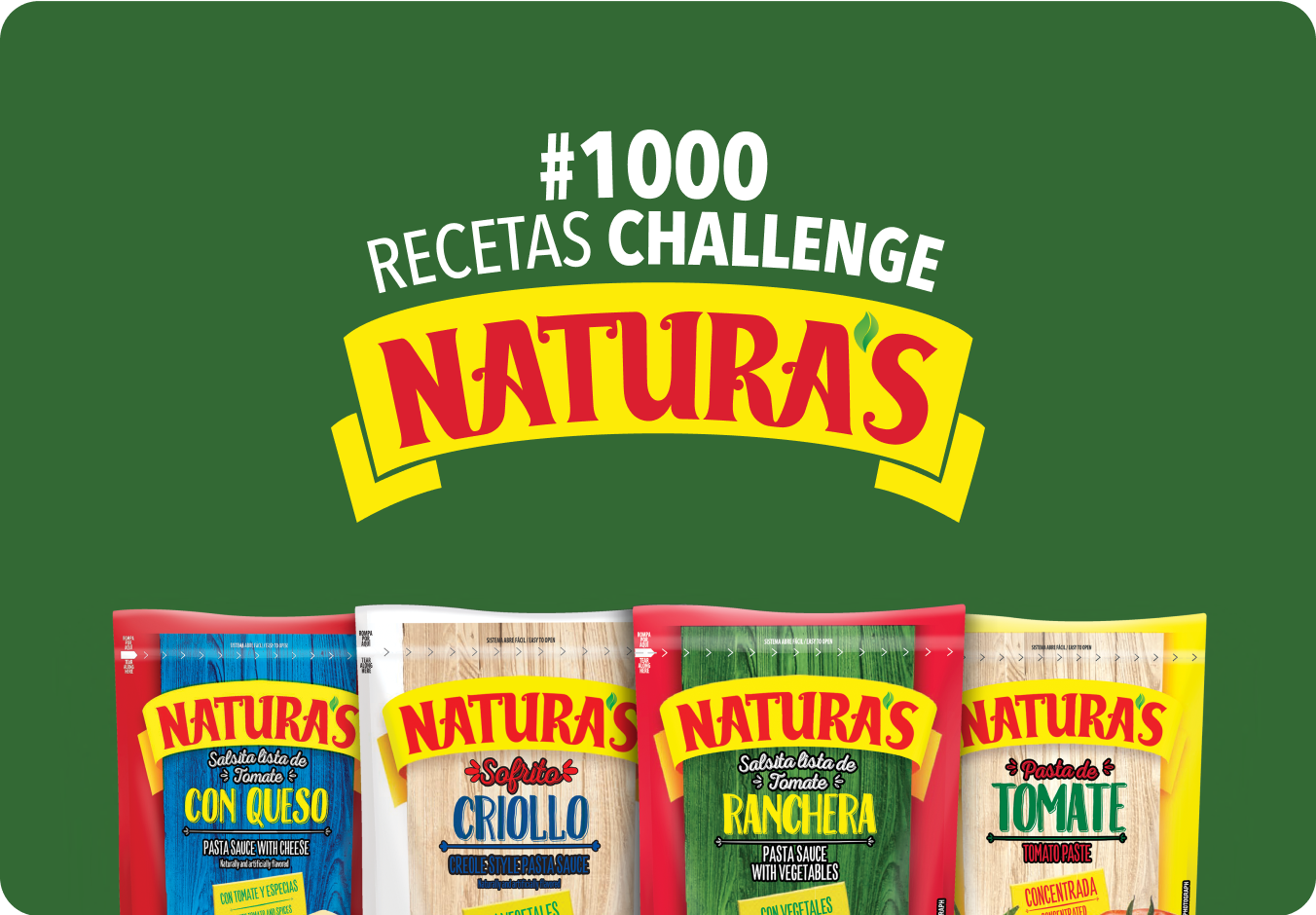 Con Natura’s, tu creatividad en la cocina no tiene límites. Ya seas un chef experto o el cocinero de la familia, queremos conocer tu historia. Esa receta especial que a todos les encanta, la que hace que la gente pregunte "¿qué le pusiste?", merece ser compartida. Abre un paquete de Natura’s, usa lo que tienes en casa y crea tu obra maestra. Comparte tu receta usando el hashtag #1000RecetasChallenge en Instagram o TikTok.